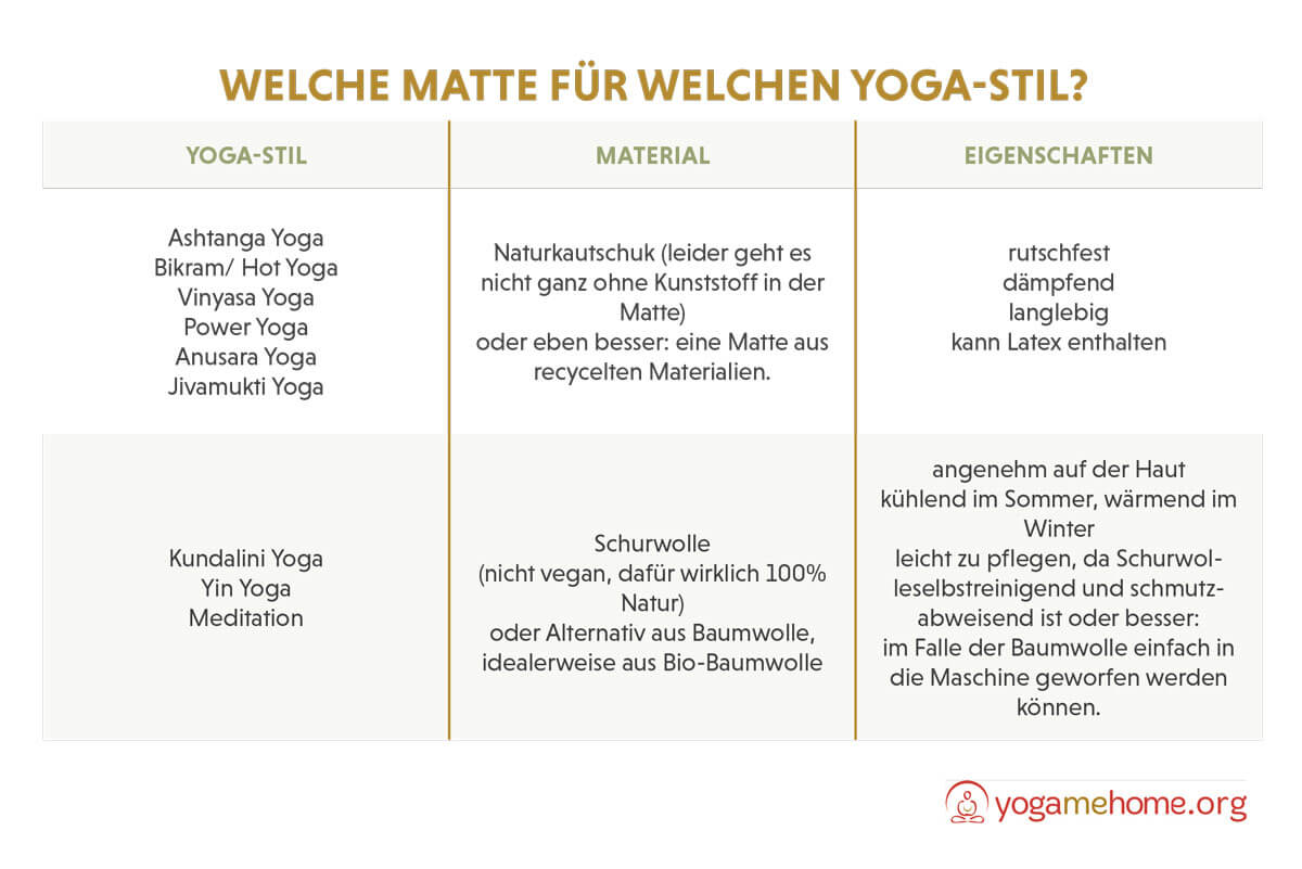 Hier findest du auf einen Blick, für welchen Yogastil welche Matte geeignet ist: