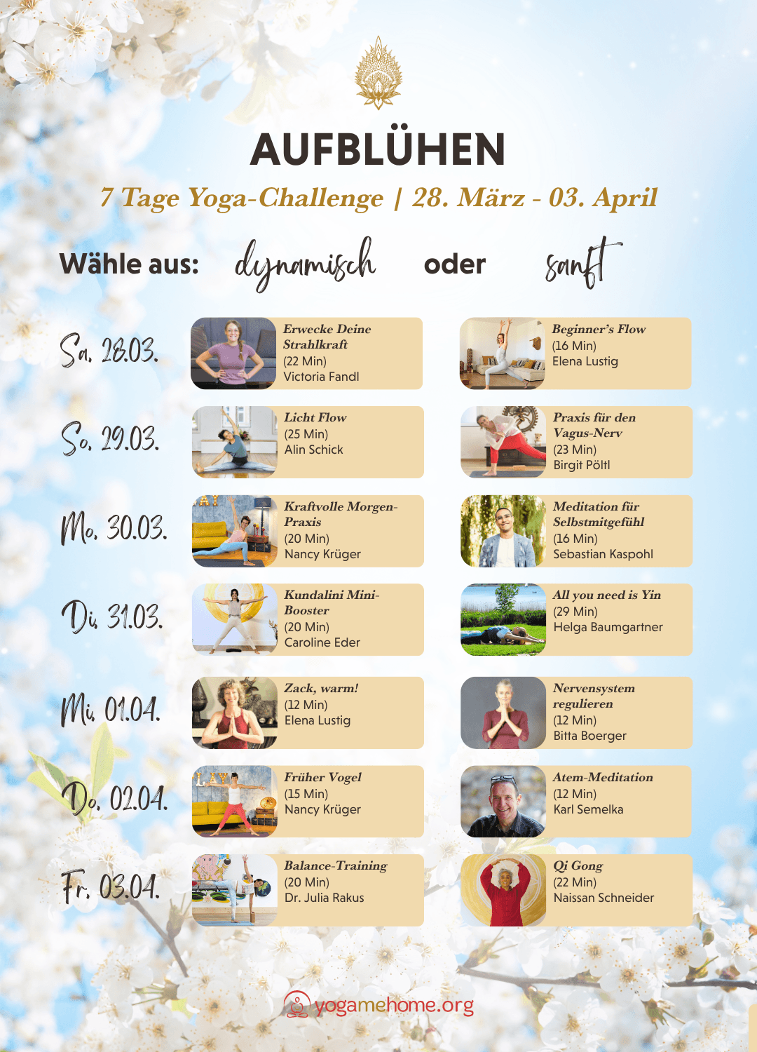 Daher laden wir Dich ein zu AUFBLÜHEN, eine 7-Tage-Yoga-Challenge für: